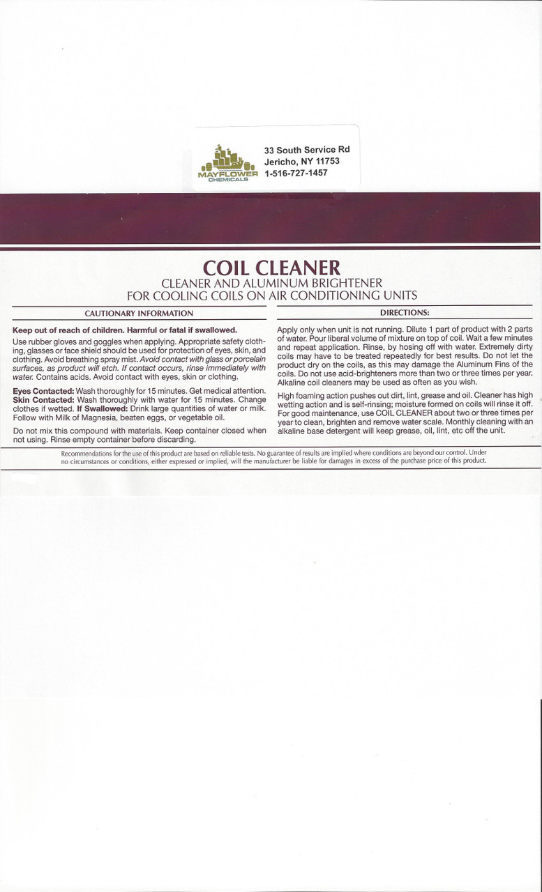 Apply only when unit is not running. Dilute 1 part of product with 2 parts of water. Pour liberal volume of mixture on top of coil. Wait a few minutes and repeat application. Rinse by hosing off with water. Extremely dirty coils may have to be treated repeatedly for best results.